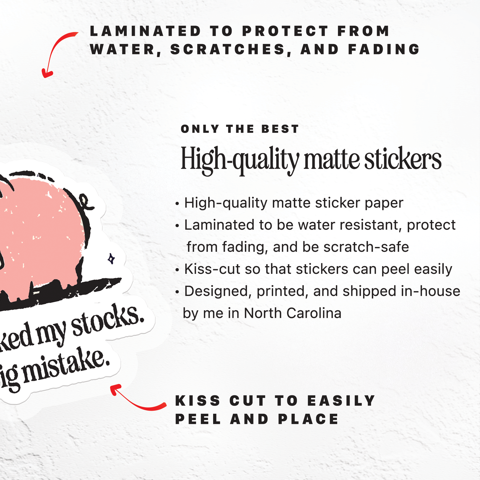 Sticker - 2(inches on the longest side) - Each sticker is individually wrapped with a backing in an Cellophane Sleeve - Designed, Printed, and Shipped in the USA - Laminated Sticker - Water Resistant