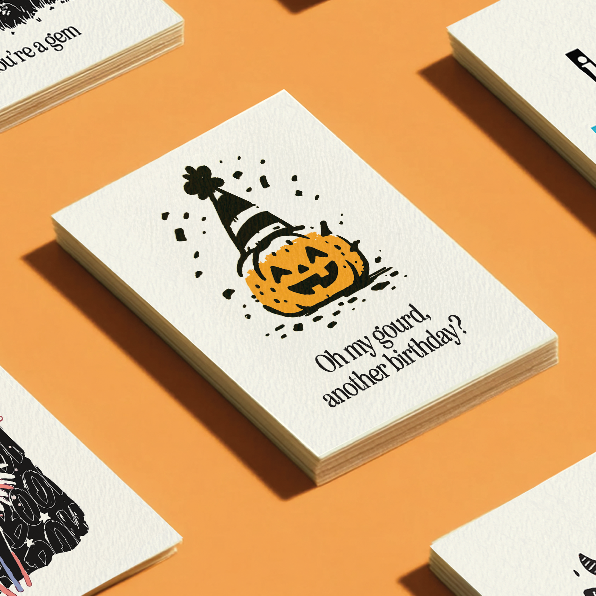 - Front Text: "Oh my gourd, another birthday?"